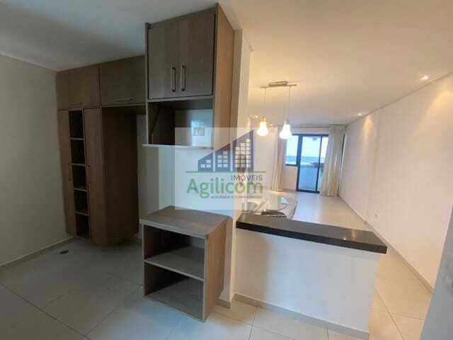 Sala para 2 ambientes com varanda e cozinha Americana com armários planejados.
