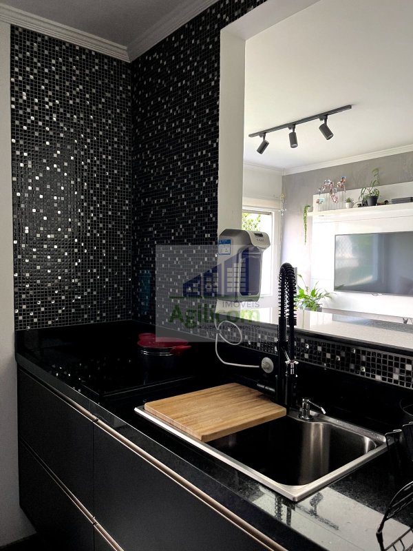 Apartamento de 82m2, 3 dormitórios, 2 banheiro, 1 vaga de garagem, cozinha americano repleta de armários e área de serviço.