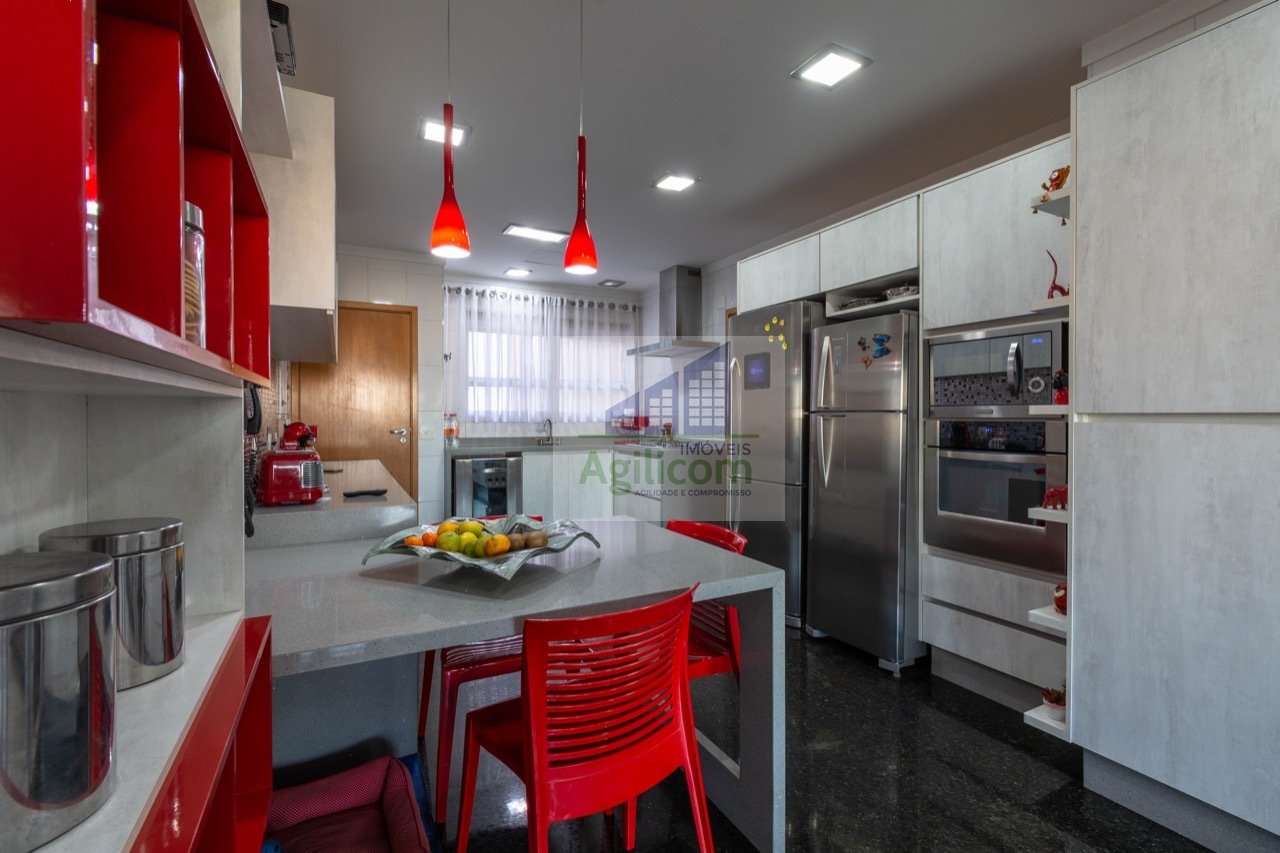 Apartamento de 202m2, 3 suítes, 4 vagas com depósito, cozinha ampla com armários, área de serviço, living com sacada.