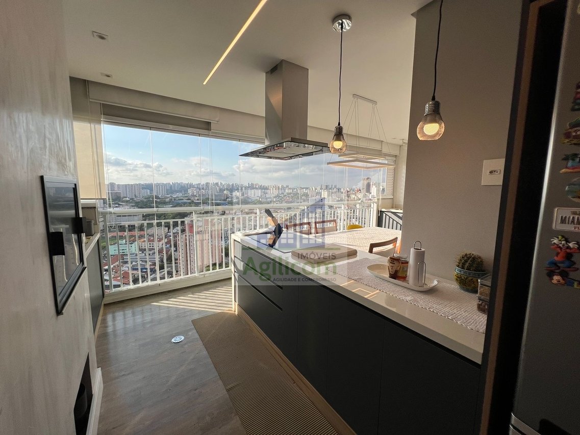 No momento são 2 dormitórios sendo 1 suíte com closet, 2 banheiros, 2 vagas fixas, varanda gourmet, ar condicionado forno e microondas embutidos e armários