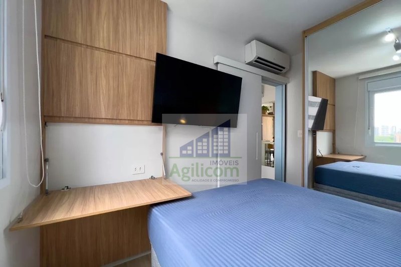 Apartamento MOBILIADO de 47m², com 2 dormitórios, 1 banheiro, sem vaga de garagem, vista live, cozinha bem equipada.