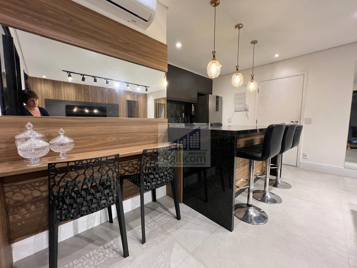 Apartamento MOBILIADO de 73 m² de área, com 1 suíte, 1 banheiro social, 1 vaga de garagem, living amplo com varanda, cozinha bem equipada e área de serviço.