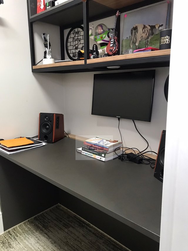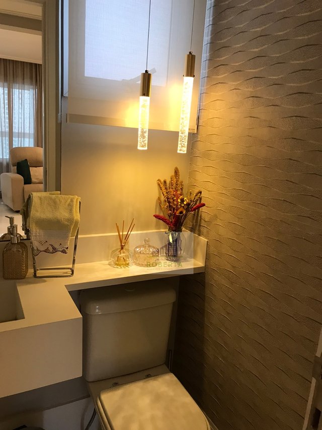 Conta com piso em porcelanato com brilho, e vinílico na área íntima.