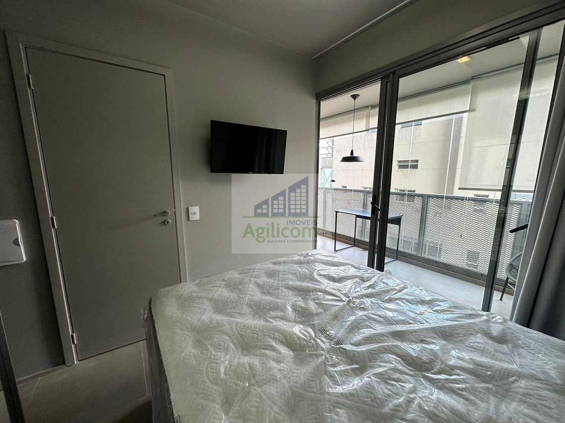 Studio de 40m2, com 1 vaga de garagem, varanda, completamente mobiliado.