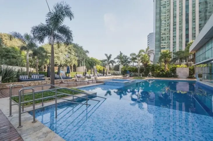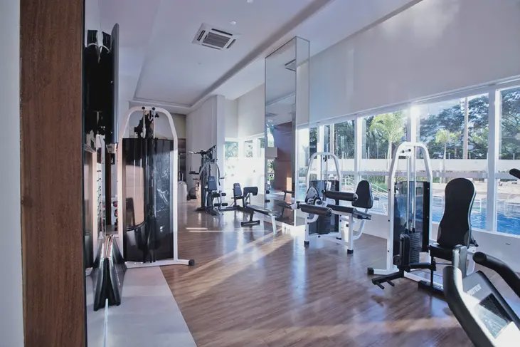 Ar condicionado, Wi-Fi, Máquina de lavar/secar e Smart TV.