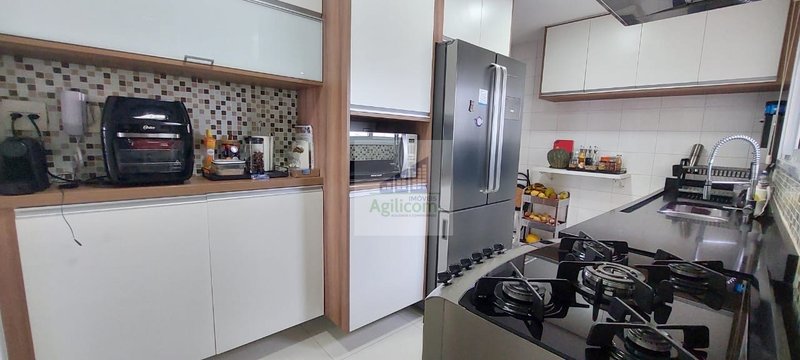Apartamento de 123m², 3 dormitórios sendo 1 suíte, 3 banheiros ao total, 2 vagas de garagem, armários nos quartos e na cozinha e ar condicionado em todos os cômodos , área de serviço, dependência de empregado com banheiro.